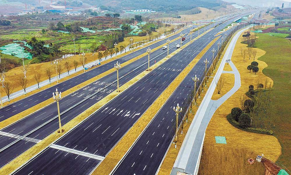 2月8日,西部(重慶)科學城科學大道一期3公里示范段正式竣工,具備通車條件。 首席記者 龍帆 攝/視覺重慶