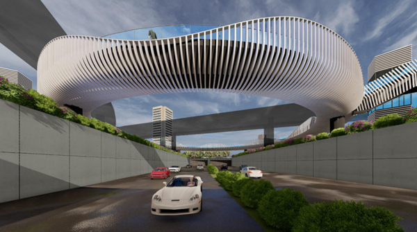 新牌坊立交轉盤環狀人行天橋效果圖。渝北區委宣傳部供圖
