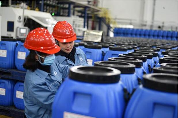 川維化工公司員工節后返工第一天正在進行產品包裝發運工作。陳琳攝