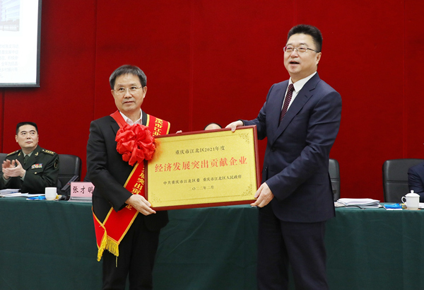 江北區為22家2021年度經濟發展突出貢獻企業授牌。江北區委宣傳部供圖