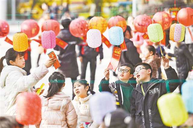2月14日,璧山區正興鎮,小朋友們在廣場上猜燈謎。記者 崔力 攝/視覺重慶