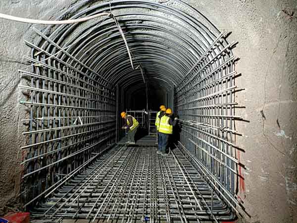 在金剛沱社區圣中村,圣中水庫施工場地上,挖掘機、工程車在工地上來來往往,20多名施工人員在節日期間對水庫壩基和上游圍堰基礎進行開挖施工,在位于左岸的泄洪放空洞內,工人在進行鋼筋綁扎施工。