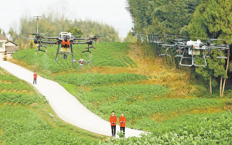 2月15日,梁平區碧山鎮龍橋村三組,專業無人機飛手操控著無人機為油菜噴施硼肥。眼下,龍橋村種植的1000畝油菜進入花蕾期,村里組織植保無人機給業主和村民們種植的油菜免費施肥,提高油菜的結實率,幫助農民增產增收。