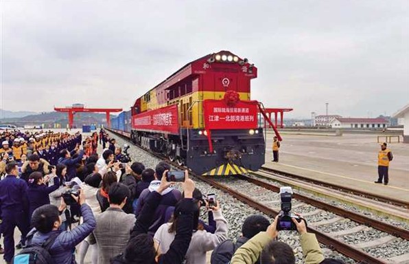 江津區將力爭在未來3年,推動西部陸海新通道江津班列到發貨量占全市南向通道班列的50%以上,到發貨值超過500億元,全力打造西部陸海新通道南向班列的主到發點。