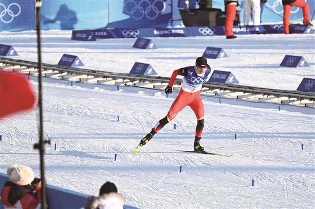 王強在北京冬奧會越野滑雪個人短距離(自由技術)賽上全力沖刺。攝/萬難