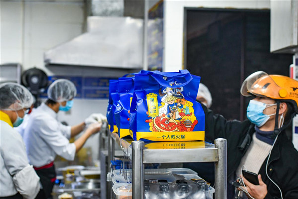 外賣騎手取餐。周師兄重慶火鍋供圖