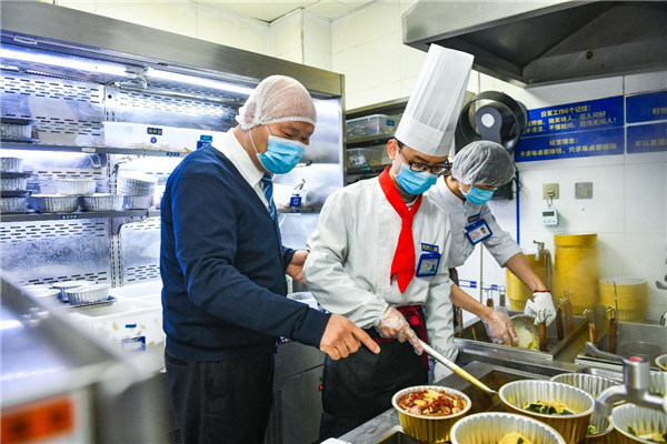 田茂豐在后廚指導。周師兄重慶火鍋供圖