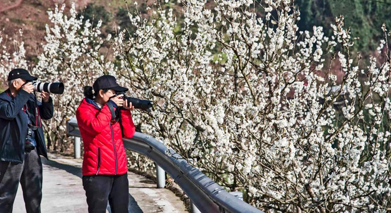 櫻桃花盛開,吸引不少攝影愛好者前來拍照。玉峰山鎮供圖