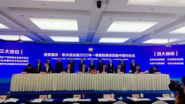 人民網重慶3月1日電 2月28日,彭水縣舉行2022年一季度重點項目集中開工、集中簽約儀式。其中,集中開工22個項目,計劃總投資30.2億元,集中簽約14個項目,協議投資70.4億元。