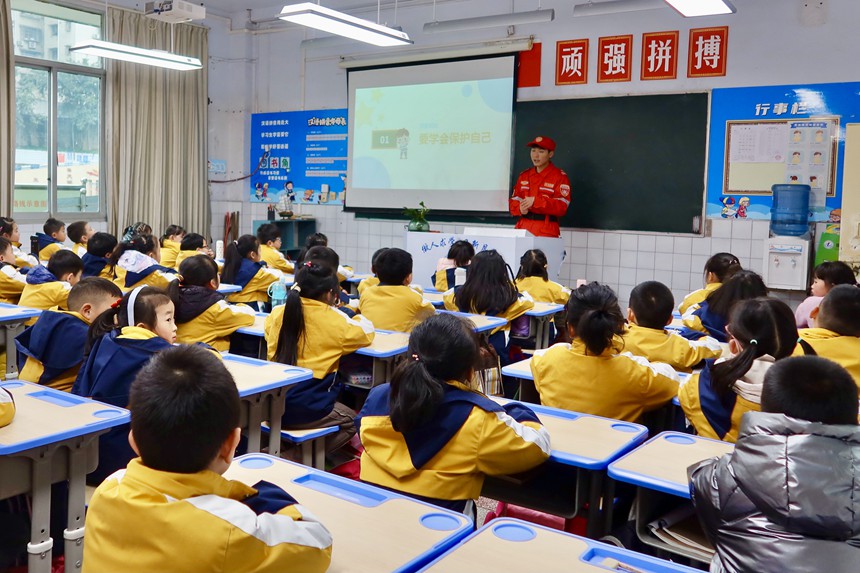 音樂場館中,“紅星管樂團”的孩子們奏響樂器,感悟音符間的樂趣與靈動;科技大樓中,孩子們盡情在互動設備中體驗科技的樂趣,探究光發射和光接收的“無皮鼓”,了解電壓的“怒發沖冠”;來自重慶安全技術學院應急救援隊的隊員們,則利用延時活動時段,帶領孩子們開展包括學習心肺復蘇技能在內的“生命健康教育”課程……