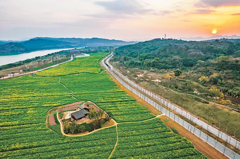 廣陽島,夕陽下的油菜花田。廣陽島已成為重慶的一張“綠色”名片。(資料圖片)記者 謝智強 攝/視覺重慶