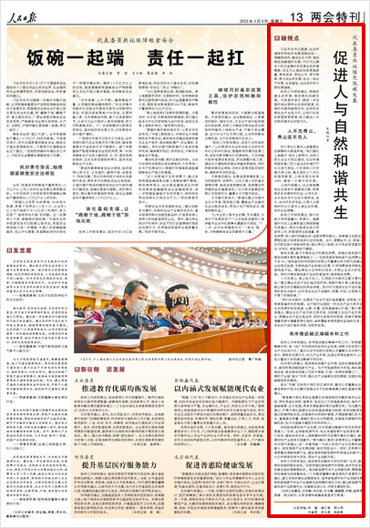 政府工作報告提出,持續改善生態環境,推動綠色低碳發展。代表委員表示,要進一步加強污染治理和生態保護修復,處理好發展和減排關系,加快形成綠色生產生活方式,讓我們生活的家園更綠更美,努力建設人與自然和諧共生的現代化。