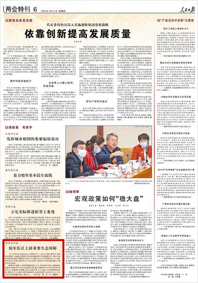 曹清堯代表建議,要發展戰略性新興產業,推動綠色發展,全面塑造創新驅動發展新優勢;加大執法檢查力度,建立完善保護長江的長效機制,筑牢長江上游重要生態屏障;將長江沿線文物、文化、旅游、產業等資源有效串聯,探索長江文化保護傳承利用新路徑,全面系統展示弘揚長江文化,為長江經濟帶高質量發展注入新動力。