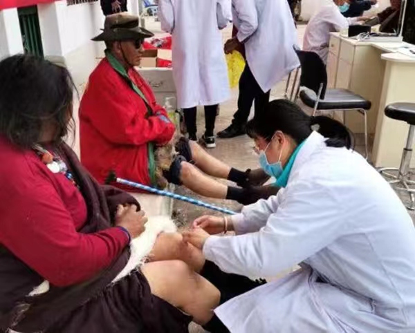 對口幫扶以來,九龍坡區中醫院先后派駐醫療管理、中醫針灸、超聲、護理等共5名幫扶人員到芒康縣藏醫院開展長期幫扶工作,在芒康縣內開展巡回醫療義診活動,巡診地域遍及海拔4500米的高原蟲草采挖點、嘎托鎮、昂多鄉、加它村、曲孜卡鄉、納西鄉等鄉村。為村民免費進行超聲檢查、血壓檢測,進行包蟲病、風濕關節病等疾病預防治療的衛生宣講,為中小學的孩子們舉行手衛生科普活動,受益群眾2300多人。