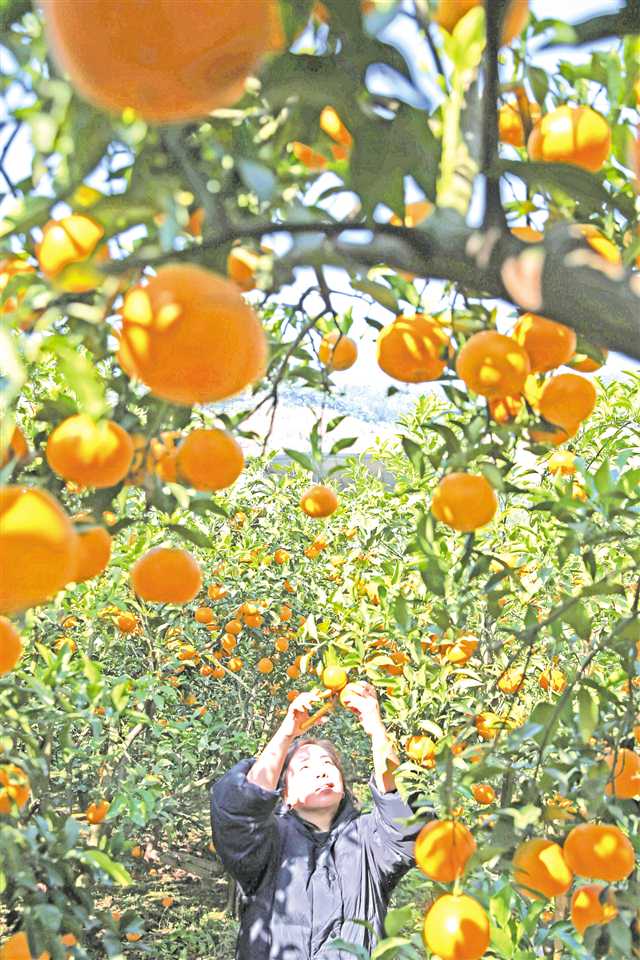 跳磴鎮石盤村村民在采摘春見柑橘 攝/楊敏