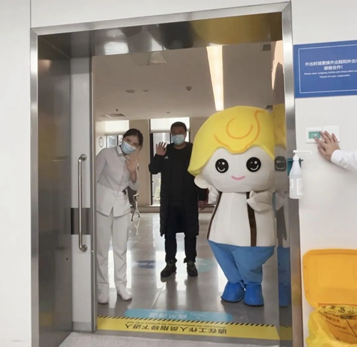 醫院耳鼻咽喉科病房,一個5歲的小男孩,身穿病號服,開著一輛“跑車”,在爸爸媽媽、護士和寬寬天使(醫院形象使)的陪伴下一路從病房開進了手術室交換間。