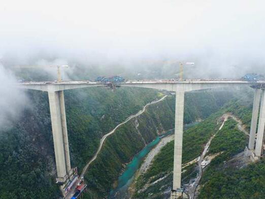 城開高速東河1號特大橋左幅連續剛構順利實現合龍。重慶高速集團供圖