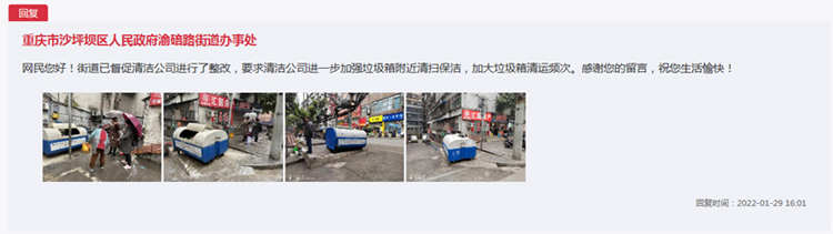 - 辦得好|網友反映路口垃圾箱臟亂差 重慶沙坪壩:已整改