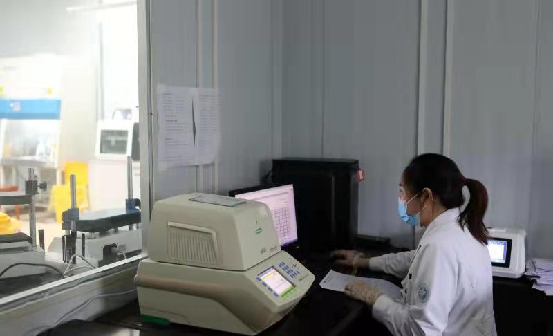 21日,重慶市永川區人民醫院檢驗科的醫務人員進入核酸檢測實驗室,忙碌地進行手工加樣標本制備、核酸提取儀提取核酸、熒光PCR核酸擴增,最后根據核酸檢測的熒光PCR反應結果,出具核酸檢測報告。