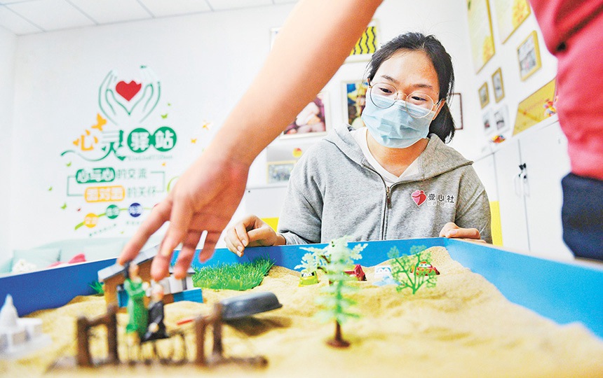 三月十六日,九龍坡區石坪橋街道,心理咨詢師正在給一名中學生進行心理輔導。記者 崔力 攝\視覺重慶