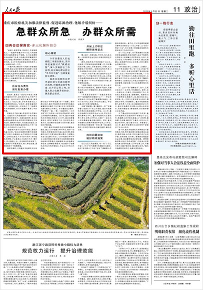“盡最大努力解決好人民群眾的急難愁盼問題,真正讓他們感受到司法溫度!边@是重慶市各級檢察機關檢察官的目標。重慶市檢察機關堅持和發展新時代“楓橋經驗”,探索信訪案件“件件有回復,事事有回音”,從源頭上化解基層矛盾,多方聯動形成多元化糾紛化解機制。