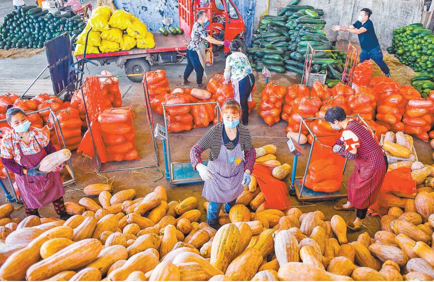 3月18日,重慶雙福國際農貿城,商戶打包蔬菜準備發往市內各大超市和農貿市場。(資料圖片)記者 齊嵐森 攝/視覺重慶