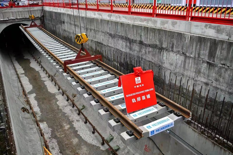 軌道交通5號線北延伸段工程線路全長8.64公里,線路橫跨兩江新區及渝北區,建成后將與5號線一期工程形成串聯大渡口區、九龍坡區、沙坪壩區、渝中區、江北區、兩江新區、渝北區的南北向骨干通道。為加快推進5號線北延伸段工程建設進度,軌道集團與施工單位——中建五局、中建三局統籌規劃、科學整合資源、優化施工方案、精心組織施工,克服了與其他市政工程交叉同步施工、管線遷改、交通導改、極端天氣、疫情防控等困難,按照施工計劃順利進入鋪軌施工階段。