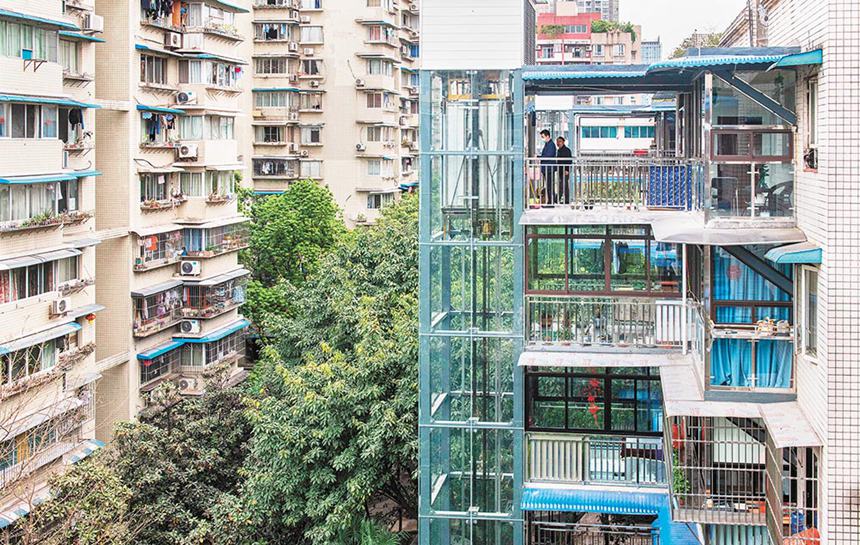 3月25日,江北區石馬河街道陽光家園小區,居民搭乘剛投用的電梯。目前,江北區先后對19個老舊小區實施了包括電梯加裝、外立面整治、老舊管線更新等項目在內的改造,惠及居民超1.6萬戶。今年,該區還將完成老舊小區改造項目3個,總建筑面積63.57萬平方米。記者 崔力 攝/視覺重慶