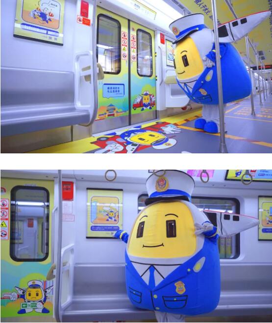 整個車廂的地面模擬真實的道路,給乘車的同時增添了不少趣味。而車門兩側則是軌道交通火災自救的漫畫指南:身上著火了怎么辦,行駛的軌道列車著火了怎么辦,逃生時什么不該帶……生動的漫畫在乘車的間隙已經普及了軌道消防安全知識。