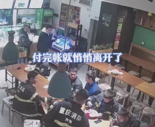 11月24日23時許,重慶市開州區消防救援支隊云楓消防救援站的八名消防員出完警,在一家面館用餐。一名陌生男子為他們悄悄買水后悄悄離開,這溫馨的一幕,被面館里的視頻監控記錄了下來。