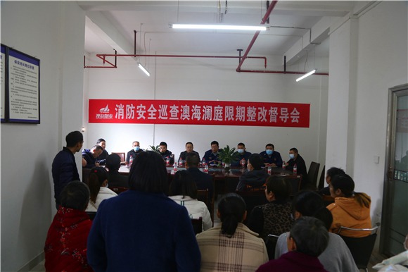 檢查現場,聯合檢查組重點對地下建筑是否存在違規改變用途,安全出口、疏散通道、設置是否符合消防技術標準,并保持暢通,是否按要求設置消防應急照明、疏散指示標志,電氣線路敷設及電氣設備安裝、使用是否符合相關技術標準和管理規定等內容進行了逐一排查。隨后,檢查組還召開了消防安全巡查澳海瀾庭限期整改督導會,邀請部分業主代表參加會議。