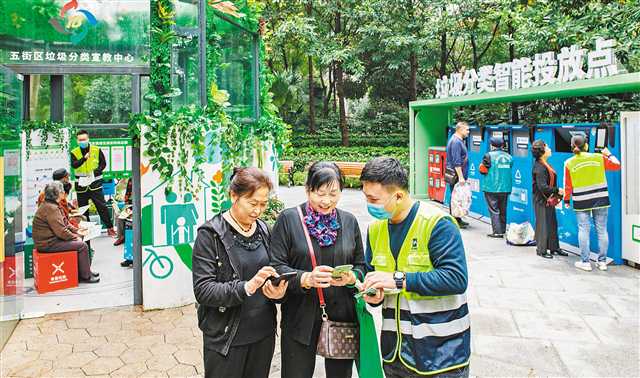 近日,渝北區回興街道科桐路社區歡樂頌小區居民蔡大爺提著兩袋垃圾下樓,刷卡打開了綠色的智能收集箱,將一袋廚余垃圾扔了進去。隨后,他的“綠色賬戶”里立刻多了幾個積分。