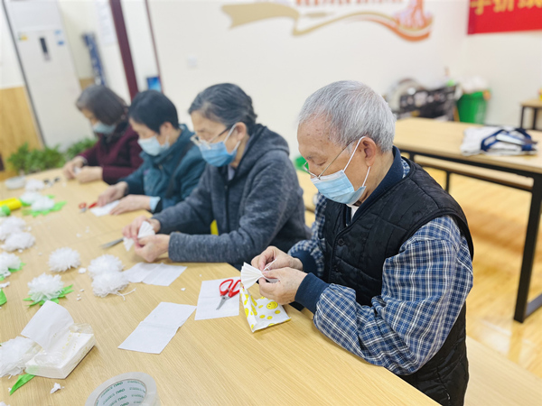 “在清明祭掃時,用紙花代替燒紙錢,以文明的方式緬懷先人,顯得更有意義,大家參與度也很高!比郊覊紊鐓^黨員志愿者表示道;顒映跏,志愿者們向長者了介紹手工紙花制作的步驟,然后將制作紙花的材料和工具發放給大家。在細心的指導示范下,長者們專心致志的制作起手工花,剪裁、粘貼、擰捏,在大家的努力下,盛開的花朵在她們手中悄然綻放,思念也深深地根植于心……