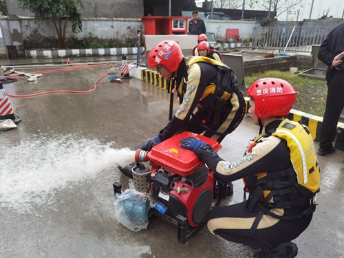 消防員使用手抬機動泵排水。涪陵消防供圖 華龍網-新重慶客戶端 發