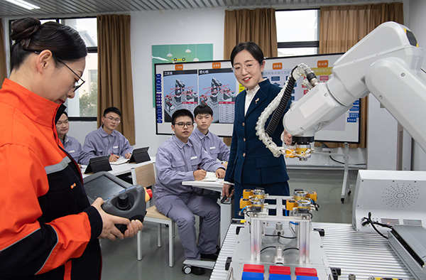 梁燕講解如何準確控制機械手臂姿態。重慶工程職業技術學院供圖