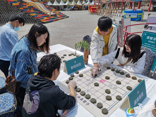 象棋青團、麻將青團、青團糖葫蘆、青團炸串、小花青團……當日中午,在美心紅酒小鎮景區紅酒廣場, 各種造型的青團美食,吸引了眾多游客爭相品嘗。尤其是象棋青團,不僅可以吃,還可以下象棋,更是吸引了大家的目光,紛紛上前一試。