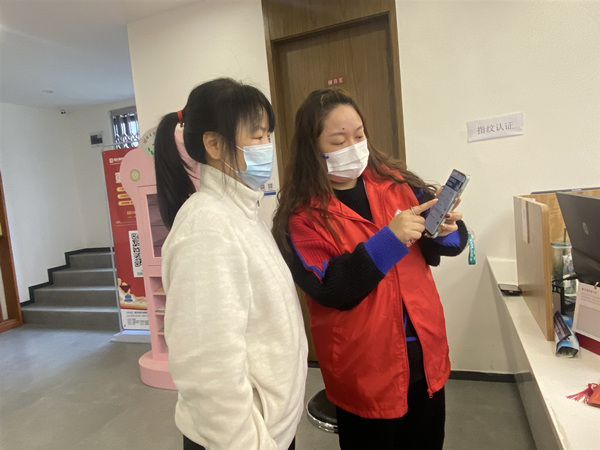 工作人員向轄區群眾推廣“全民消防安全學習云平臺”使用。龍山街道供圖
