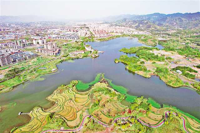 3月28日,俯瞰重慶梁平雙桂湖國家濕地公園。記者 謝智強 攝/視覺重慶