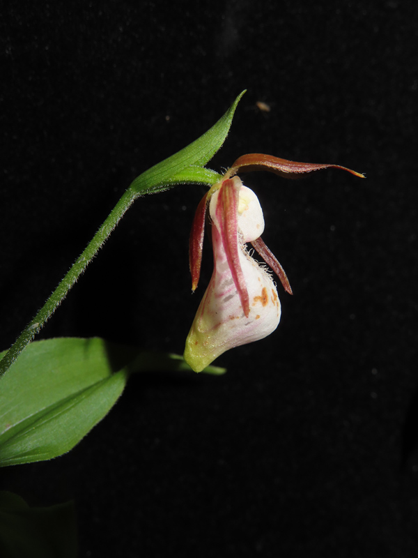 離萼杓蘭為蘭科杓蘭屬物種,主要集中分布在云南、四川、西藏等地。離萼杓蘭植株較小,側萼片完全離生,唇瓣白色而有粉紅色暈,深囊狀,倒圓錐形,囊口周圍具短柔毛,花期4-6月。