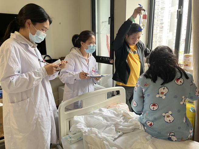 重慶市婦幼保健院駐科藥師對住院患者進行藥學查房及用藥教育。重慶市衛健委供圖