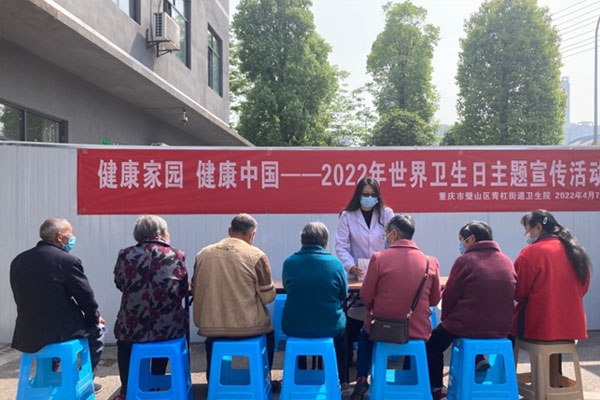 4月7日,璧山區青杠街道衛生院走進社區開展“健康家園·健康中國”為主題的世界衛生日主題宣傳活動,為居民講解冠心病、慢阻肺等疾病的預防方法,讓居民注重日常生活中飲食的健康。