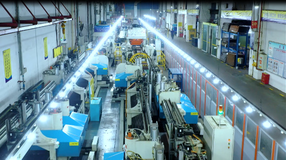 節能方面,新的空壓設備已由原先的1200kw縮減至930kw,一年內可實現節約120萬度電,所節省的電能將用于廠內兩條智能生產線的循環使用,有效減排二氧化碳942噸。與此同時,對于水資源、余熱、余冷的合理回收循環使用,不僅在綠色環保方面功不可沒,同時也是節能降耗的有效保障。