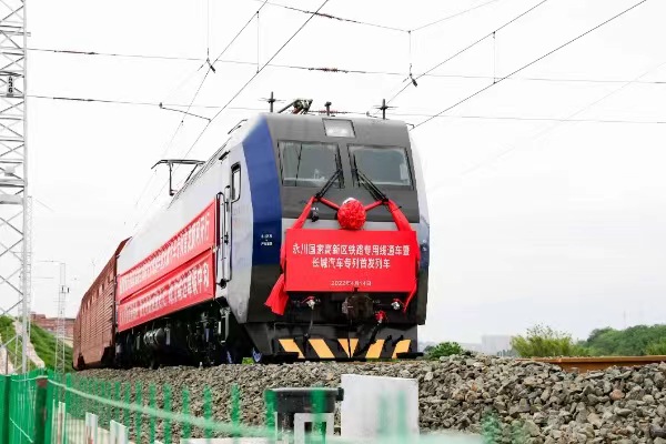 隨著一聲汽笛長鳴,一輛列車緩緩駛出。4月14日,永川區投資建設的永川國家高新區鐵路專用線正式通車運行,由永川欄桿灘火車站發往華北地區的首發專列正式發車。這是永川區著力解決園區企業物流成本高、運輸效率低等問題,在優化營商環境中使出的硬招,把貨運鐵路修到了產業園。