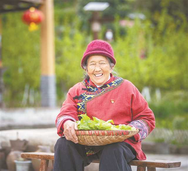 89歲的馬培清坐在家門口的藤椅上,面帶微笑地看著院壩里熙熙攘攘的人群。有游客過來要求合影,她便先把衣服撣得平平整整,再把胸前的黨徽擦拭得閃閃發亮。