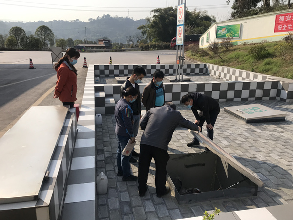 北碚區應急管理局對靜觀鎮部分加油站進行成品油非法經營專項檢查。 劉洪滔攝
