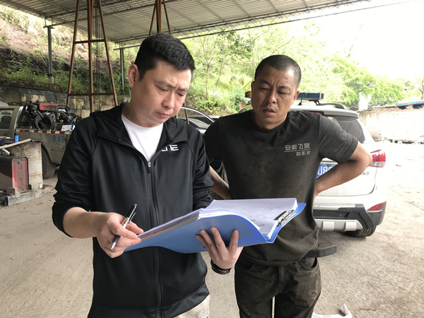 回訪涉嫌成品油非法經營的企業。北碚區交通局供圖