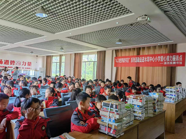 為深入推進全民閱讀,打造書香渝北,迎接第27個世界讀書日,渝北區文化和旅游委員會主辦,渝北區圖書館承辦,近期開展了一系列線上線下讀書活動。4月19日,活動走進木耳中心小學愛心接力服務點,為孩子們送上300余冊精選書籍和一堂閱讀公開課,讓書香滿溢校園。