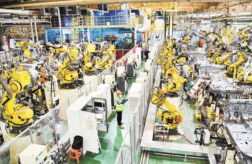 4月19日,位于巴南區明港路的重慶鈴耀汽車有限公司二廠區生產車間,智能機械臂正在加工車架。