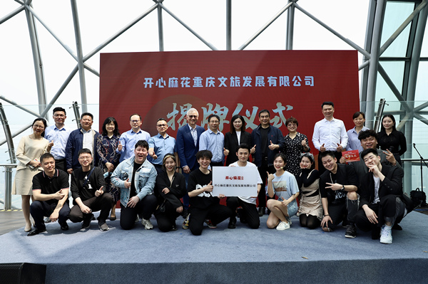 4月22日,開心麻花重慶文旅發展有限公司揭牌儀式在重慶來福士水晶連廊觀景平臺舉行,標志開心麻花正式落地重慶市渝中區。