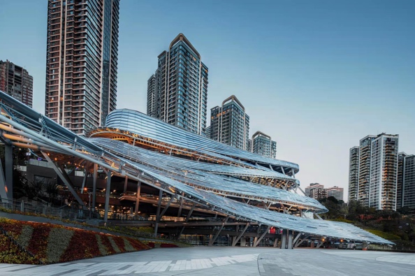 重慶市規劃展覽館新館位于南岸區彈子石廣場,總建筑面積1.7萬平方米,由中國工程院院士崔愷領銜設計,外形以“起”字意向體現起風景、起征程的“奮起”之義,又以“互”字意向表達重慶落實互聯網智能化、互聯互通國際化、山水交互綠色化、互建互享人文化要求,與對岸朝天門廣場、江北嘴大劇院共同構成長嘉匯新的地標建筑。